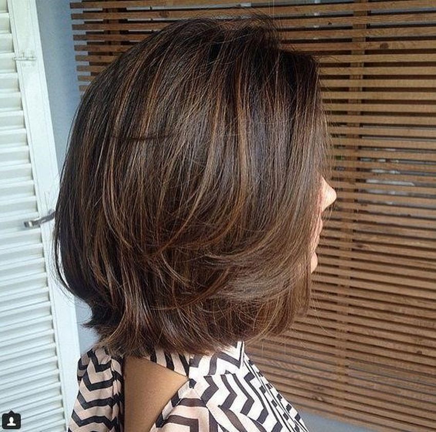 This layered bob is very pretty with its multidimensional shades of brown. From a deep chocolate brown to chestnut brown to caramel and honey brown hues, there is no end to the amount of depth and dimension in this stylish bob.