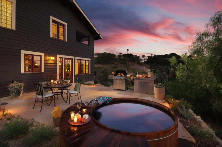 - Outdoor seating that you can relax on after enjoying a soak in the hot tub